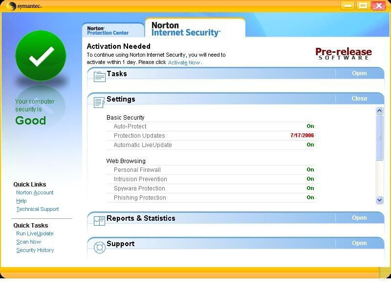 Agora estão disponíveis 5 ferramentas na suite, unificadas para surprir necessidades diversas - Norton Antivirus, Norton Personal Firewall, Norton Antispyware, Norton Identity Safe e Norton Antiphishing. Ao iniciar o programa, por default, todas as proteções já estarão ligadas automaticamente e o desempenho de segurança de cada ferramenta estará sendo alertado. Se algo estiver errado, o programa comunicará instantaneamente.